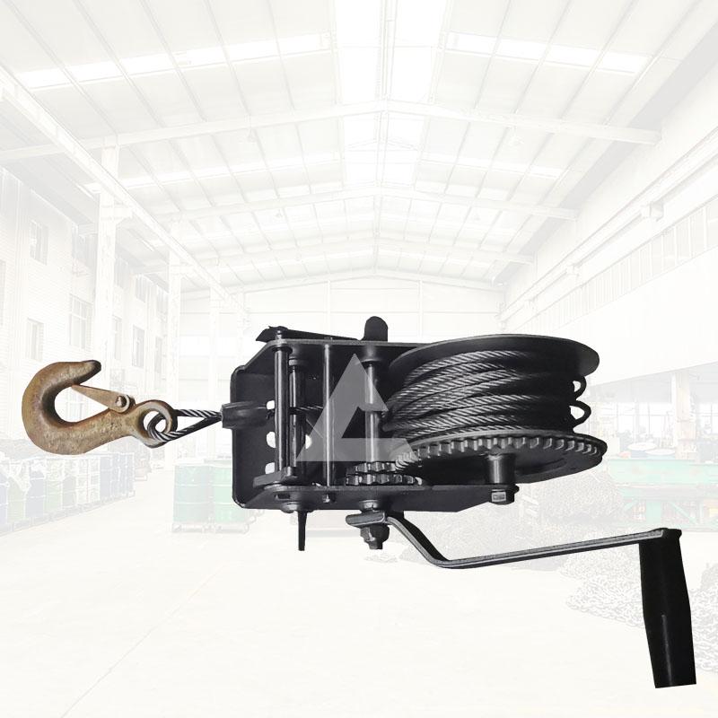雨天過后,汽車陷入泥坑中,在不能及時救援的情況選,可以選擇使用便攜式手動絞盤來解救被困的汽車。這款牽引工具體積小,方便攜帶,手動汽車絞盤是通過小齒輪傳動大齒輪來進行運行的,我們需要把手動起重絞盤的鋼絲繩固定在汽車的一端,然后手搖絞車需要鏈接到一個固定的物體,可以選擇附近的樹干,通過手動搖動那個手柄,就可以慢慢的把汽車拉出泥坑。起重葫蘆廠家撼馬建議您可以在后備箱中購買一臺手搖絞盤,以備不時之需。